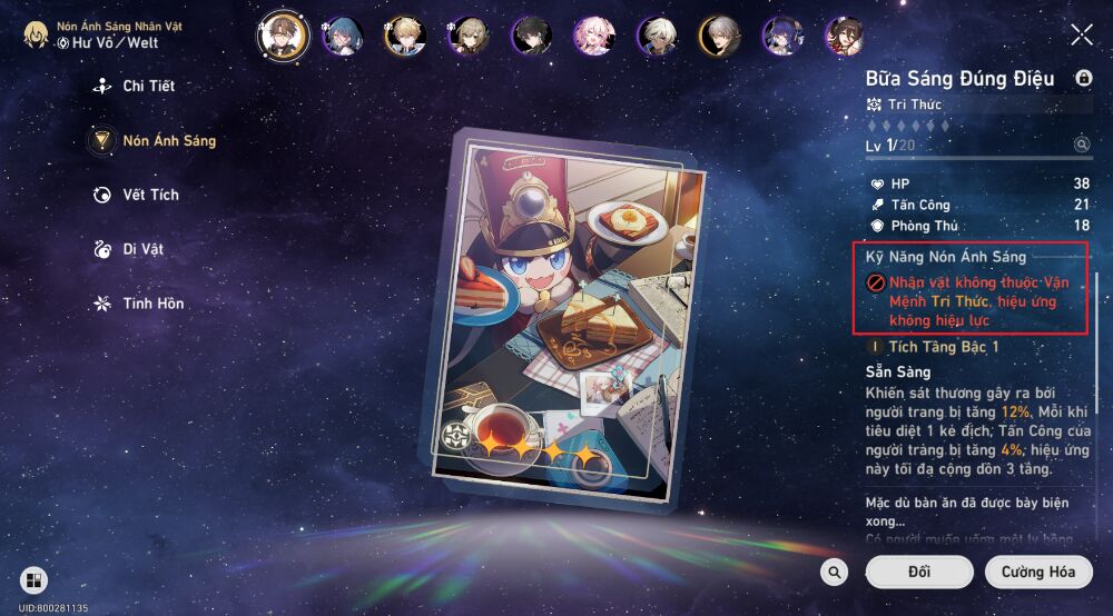 | 1. Sử dụng Nón ánh sáng khác vận mệnh |
