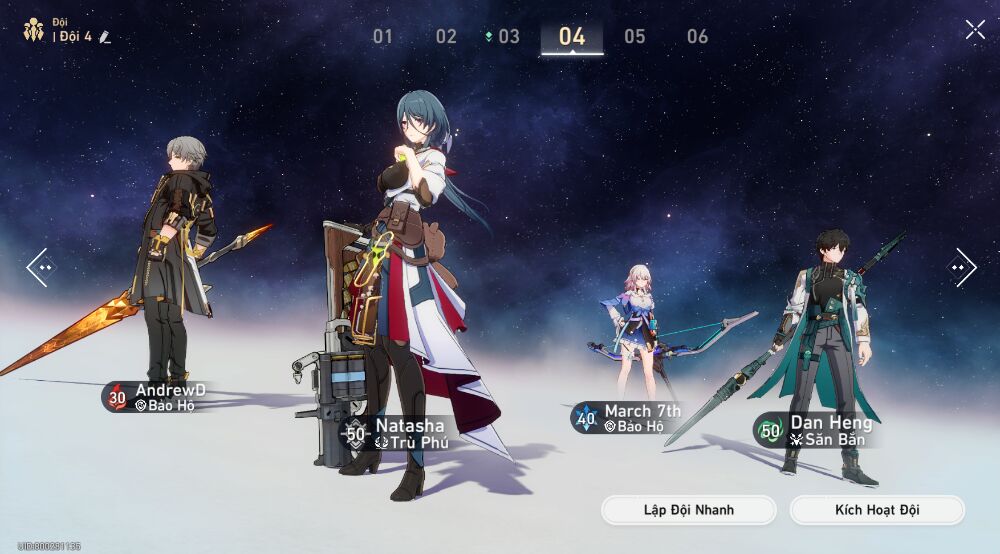 Nhà khai phá Vật lý và Dan Heng đều có khả năng gây sát thương lớn. Trong khi March 7th và Natasha là những nhân vật Buff cực kỳ mạnh mẽ. Người chơi hoàn toàn có thể tin tưởng vào sự bảo vệ của March 7th và Natasha trong mọi nội dung của trò chơi. Vì khả năng của họ là đủ mạnh mặc dù không bằng Bailu hay Luocha.