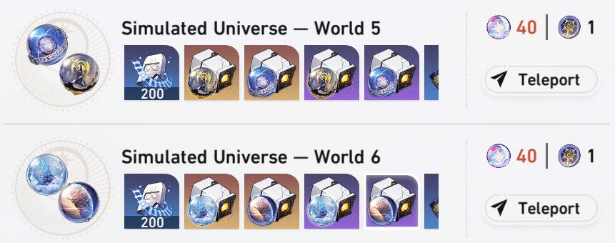 Vũ trụ mô phỏng là một chế độ trò chơi theo kiểu Rogue-like, trong đó Sức mạnh khai phá có thể đổi lấy Di vật trong Thế giới 3 đến 6.