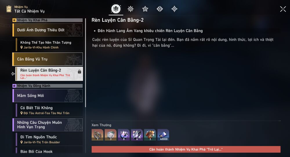 | Hoàn thành nhiệm vụ Rèn Luyện Cân Bằng