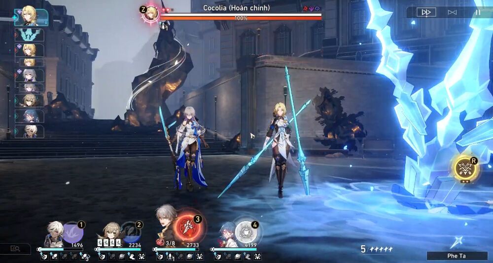 - Ưu tiên: Bạn cần tiêu diệt Bronya trước khi chuyển sang mức máu thứ ba. Đảm bảo không có nhân vật nào trong đội hình của bạn bị tiêu diệt. Luôn sử dụng Tiếng vọng để loại bỏ hai tảng băng và sử dụng nó để giảm máu của cả hai boss.