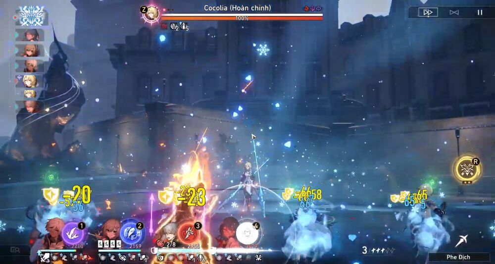 Một kỹ năng có thể làm đội hình của chúng ta bị đóng băng. Nó sẽ xuất hiện trong hàng đợi kỹ năng ở góc trái màn hình. Nếu chủ quan khi Cocolia sử dụng kỹ năng đóng băng này, chúng ta sẽ mất 50% sức mạnh tấn công và sự chuyển động của đội hình, cho phép boss cuối có thể hành động. Vì vậy, trong giai đoạn này:
