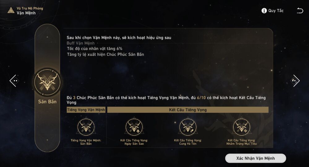 Hãy lựa chọn tất cả các thẻ Săn bắn và một số Chúc phúc vàng, xanh dương thuộc về Chúc Phúc Trù Phú và Chúc Phúc Bảo Hộ.