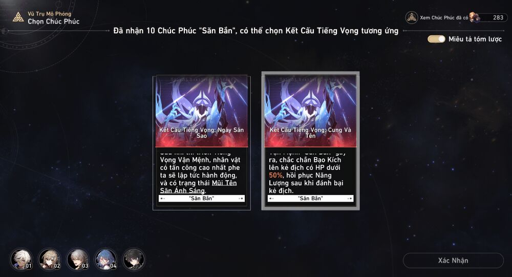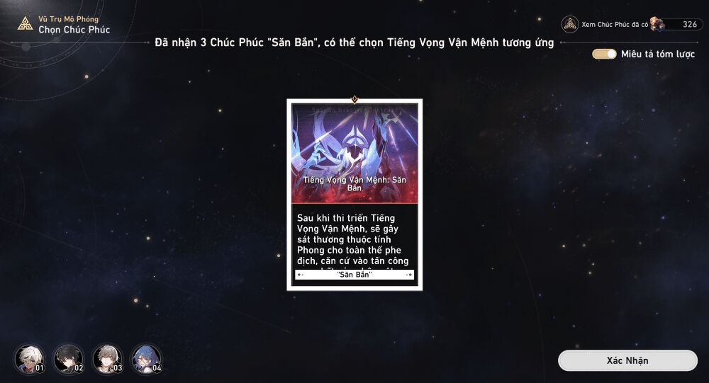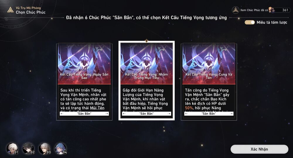 Khi bạn đã có đủ 3 tiếng vọng và 4 nhân vật chính để vượt qua các màn chơi. Điều bạn cần tiếp theo là các thẻ Chúc phúc khác.