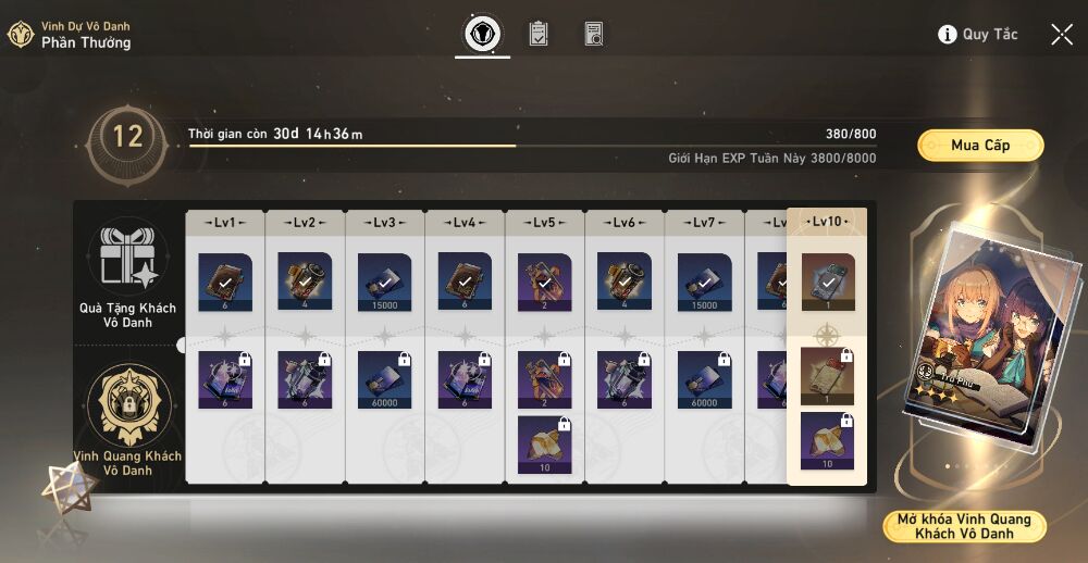 Nếu bạn có kế hoạch chi tiêu một số tiền trong trò chơi, gói Battle Pass có tên là “Vinh Danh Khách Vô Danh” mang lại giá trị tuyệt vời cho số tiền bạn bỏ ra. Nó giúp bạn tiến bộ nhanh hơn đáng kể bằng cách trực tiếp cung cấp cho bạn các vật phẩm mà bình thường sẽ cần phải dùng Sức Mạnh Khai Phá để có được. Battle Pass thường được kết hợp với Express Supply Pass để tăng số lượng Ngọc Ánh Sao nhận được.