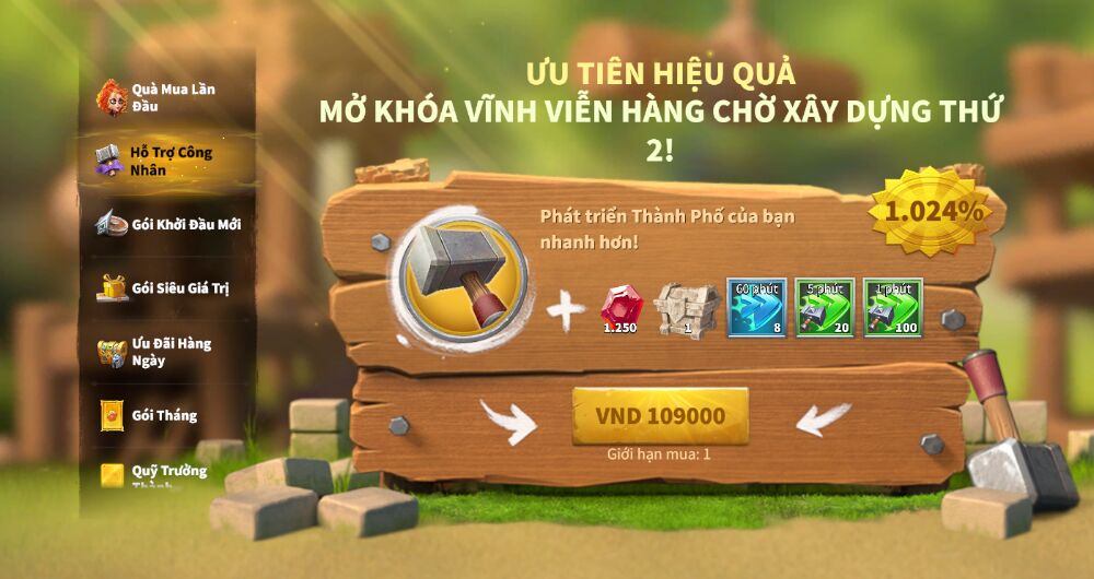The most valuable item package that we recommend you spend is the worker support package. If you join Call of Dragons and want to Doubles construction speed project, this package will give you the power you need.