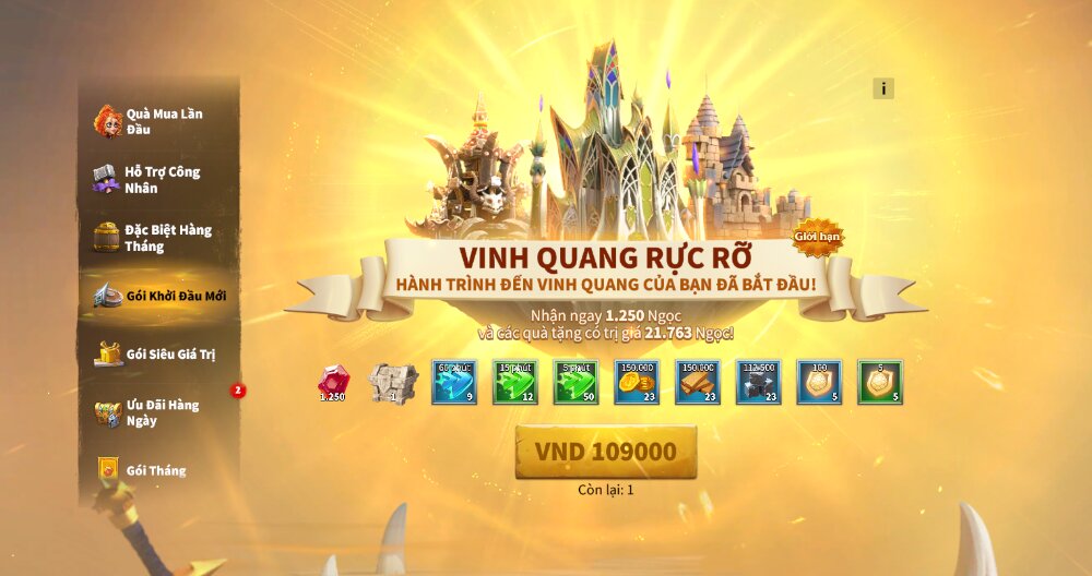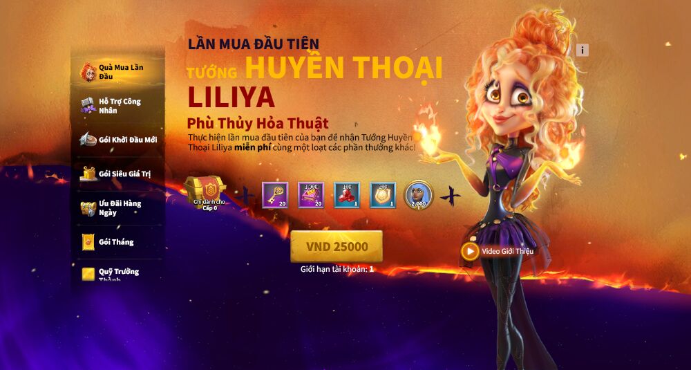 First-time gift packaging is a fairly inexpensive package. The special thing is that it provides you with great items to upgrade your legendary hero. You will get Liliya, an excellent legendary hero for the magic system.