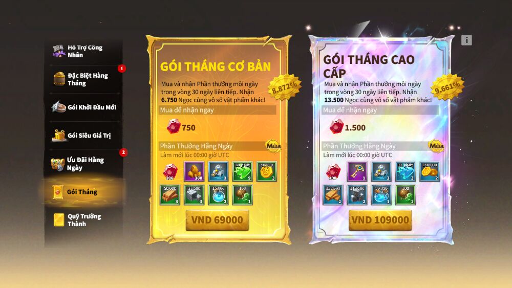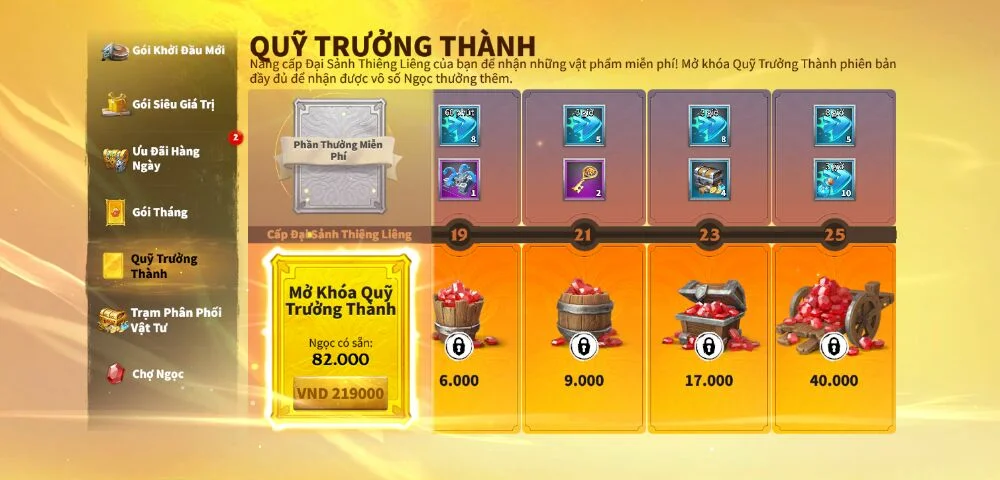 This package has many levels and is specific to each season in Call of Dragons. This means that the included items may vary depending on the server you choose. After purchasing the first tier, the next tier will have more good items and the purchase price will also increase.