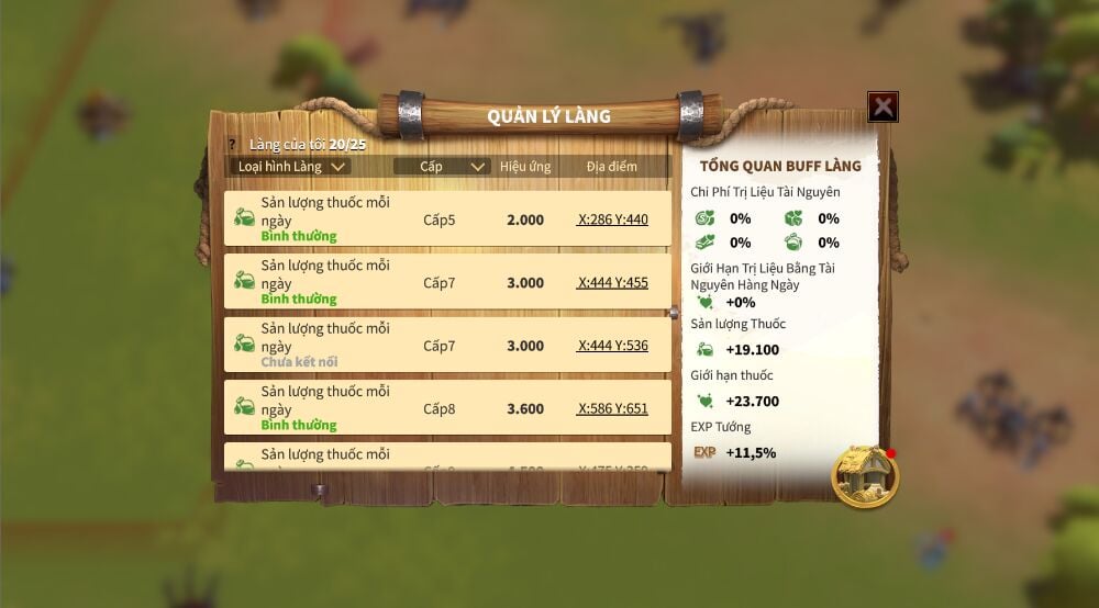 But how can you take advantage of these buffs? Please pay attention "village" symbol small at the top of your screen. By clicking on it, you will be taken to the Village management screen, where you can see a detailed overview of the Villages you have captured and the benefits they provide.