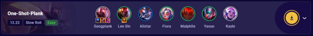 Here is a simple starting lineup with Gangplank being main staple. A lot of Gangplank's damage will come from his skills. So we have a mix of items with Blue buff for spam and Bloodthirsty for sustain. Finally, we have the Gem Gauntlet as a solid combo item as it provides both his Critical stat and further boosts his abilities.
