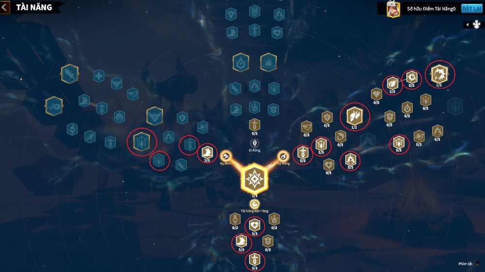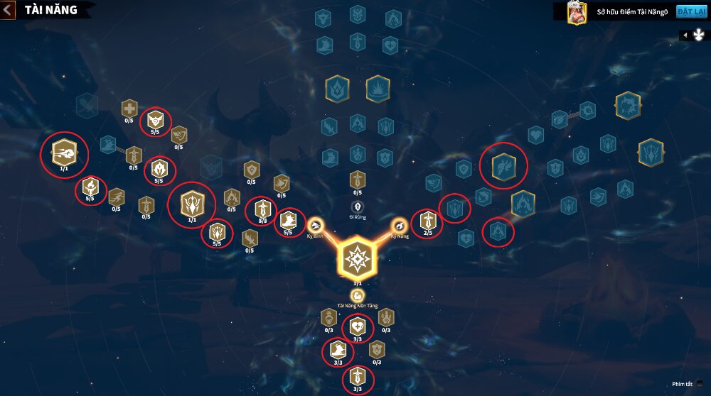 With this talent table, we will focus on the Skills branch. However, I really don't appreciate talent "Concentrate" + 10% critical rate for skills. Because the possibility of you getting a skill critical chance for the Cavalry army is really low.