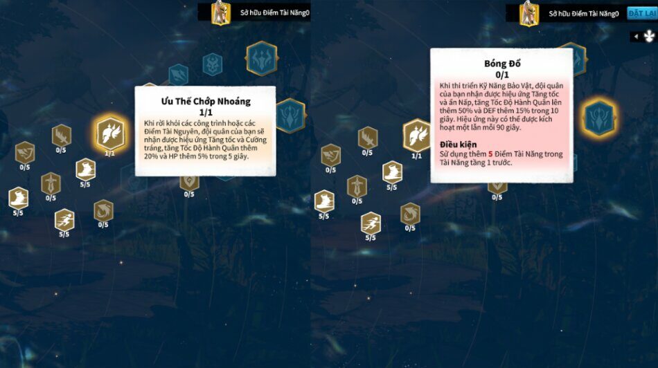 Talent “Instant superiority” , and "Shadows" is what helps your army accelerate extremely well in situations when surrounded or chased by enemies. You will almost escape all capture thanks to these two great talents.