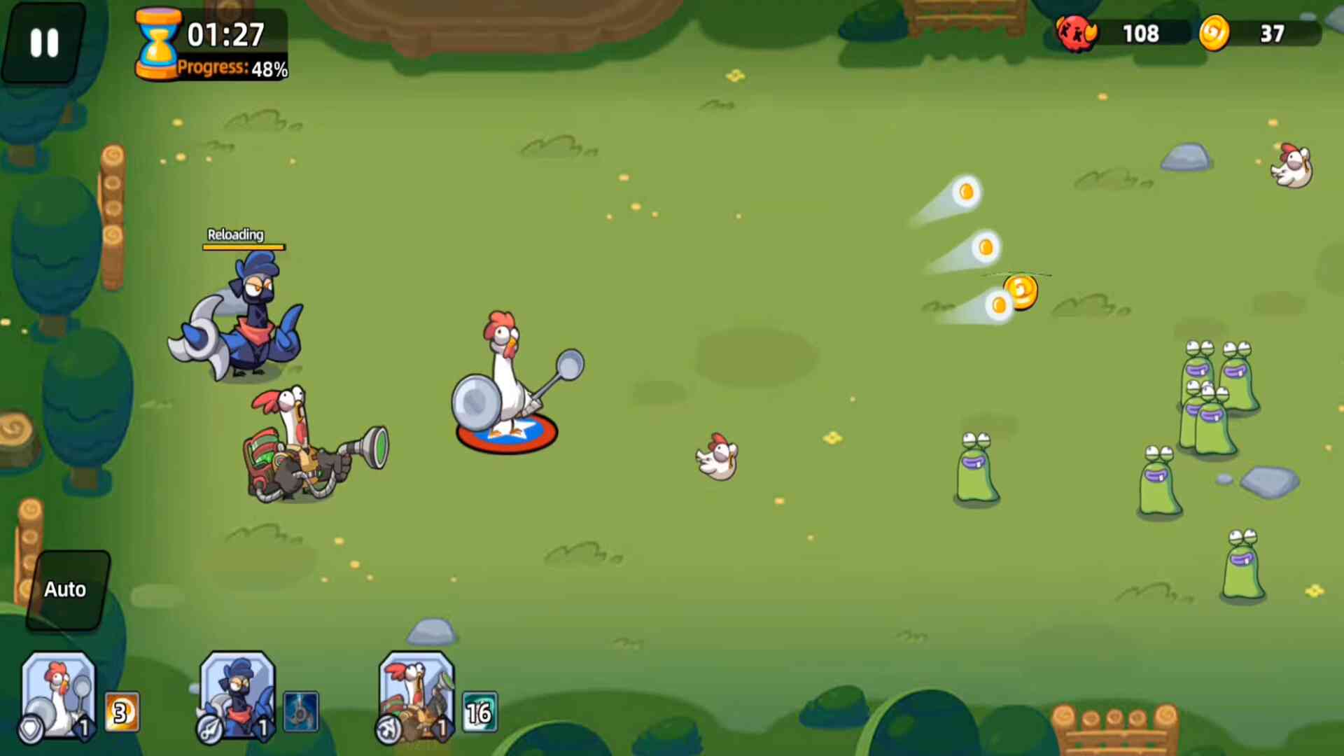 In the role-playing game Bawk Bawk Rush, each chicken will have unique exclusive skills. Unleash ultimate moves to defeat monsters and save your farm! With over 30 legendary chicken heroes, you will lead them on adventures and build your own legend, becoming an epic hero.
