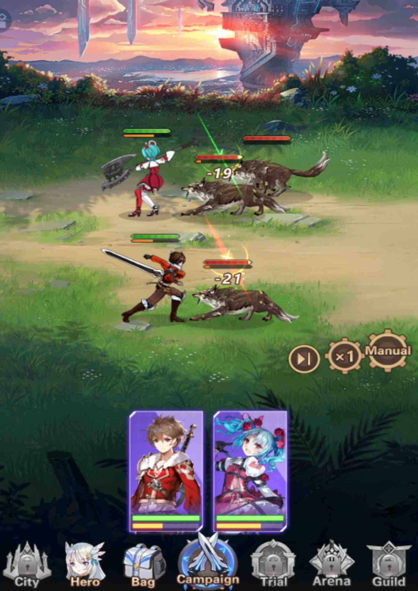 Upgrade and listen to the hero's story. Experience the Manual/Auto battle system, participate in PVE mode and face overwhelming battles. Hear the voices of famous characters, bold with ACG. Team up with guild partners to adventure together and fulfill your oath to protect the Goddess.