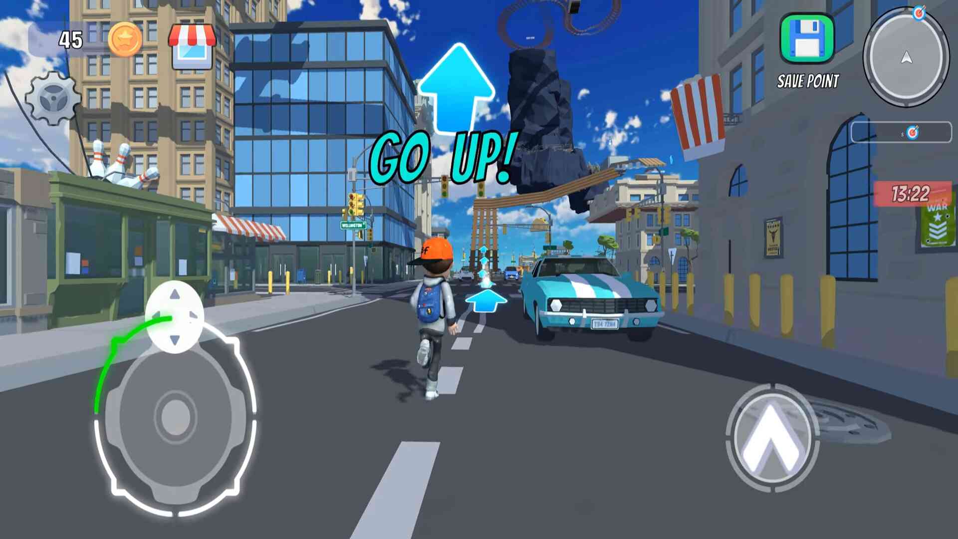 In GO UP! Parkour Game, you will transform into a talented parkour athlete, ready to conquer the most difficult challenges. You will run, jump, climb on skyscrapers, cliffs, and even moving airplanes.
