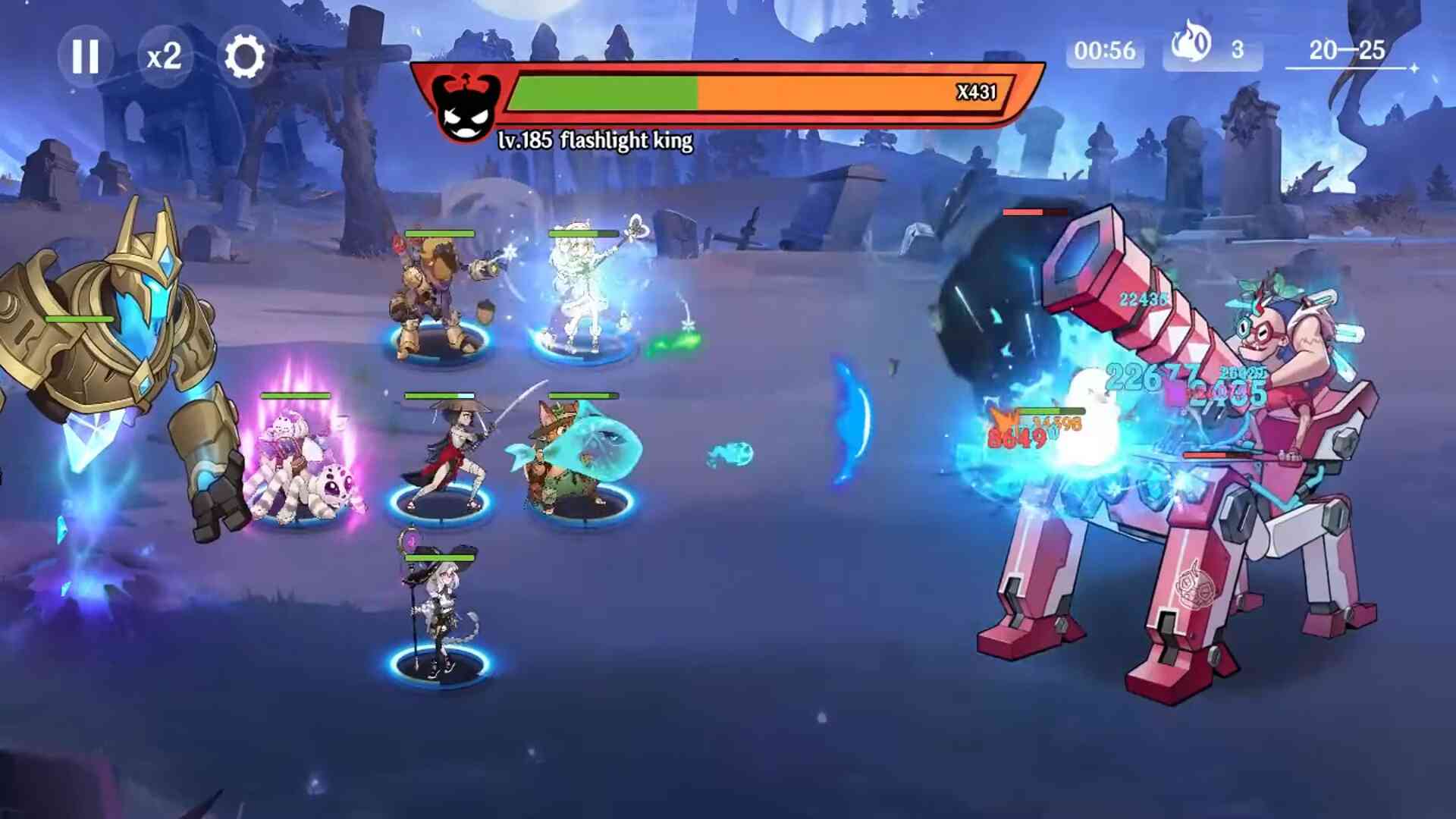The game owns a lovely 2D cartoon graphic style with unique and interesting characters, funny and cute characters. The gameplay of defensive tactics in the game is very simple, when you enter the game screen, the heroes will automatically attack monsters.