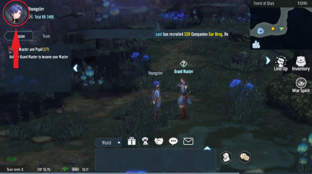 Step 2: At the home screen, click Avatar icon The player is located in the top left corner of the screen.
