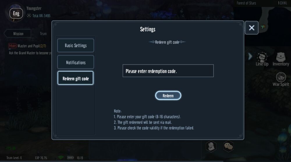 Step 4: Select item “Redeem gift code”. Then enter the gift code in the table above into the text box. Finally, click “Redeem” to receive your valuable rewards.