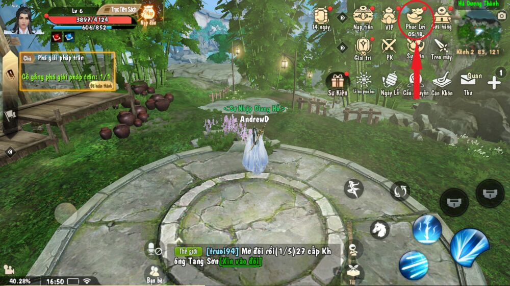 To redeem the Fantasy Tru Tien gift code, please follow these steps: