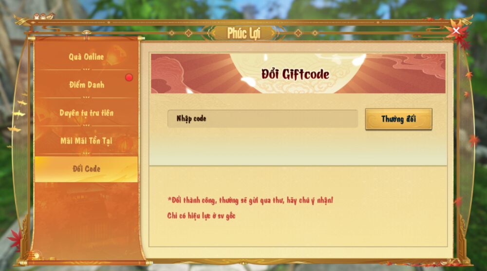 Step 3: Continue to select item “Change Code”. Then enter the gift code in the table above into the text box. Finally click “Exchange reward” to get your reward.