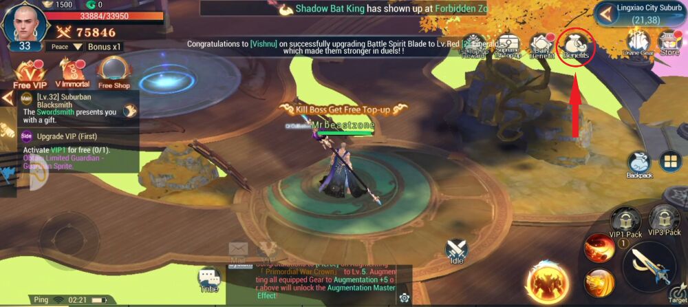 Step 2: At the home screen, click the . icon “Benefits” located in the upper right corner of the screen.