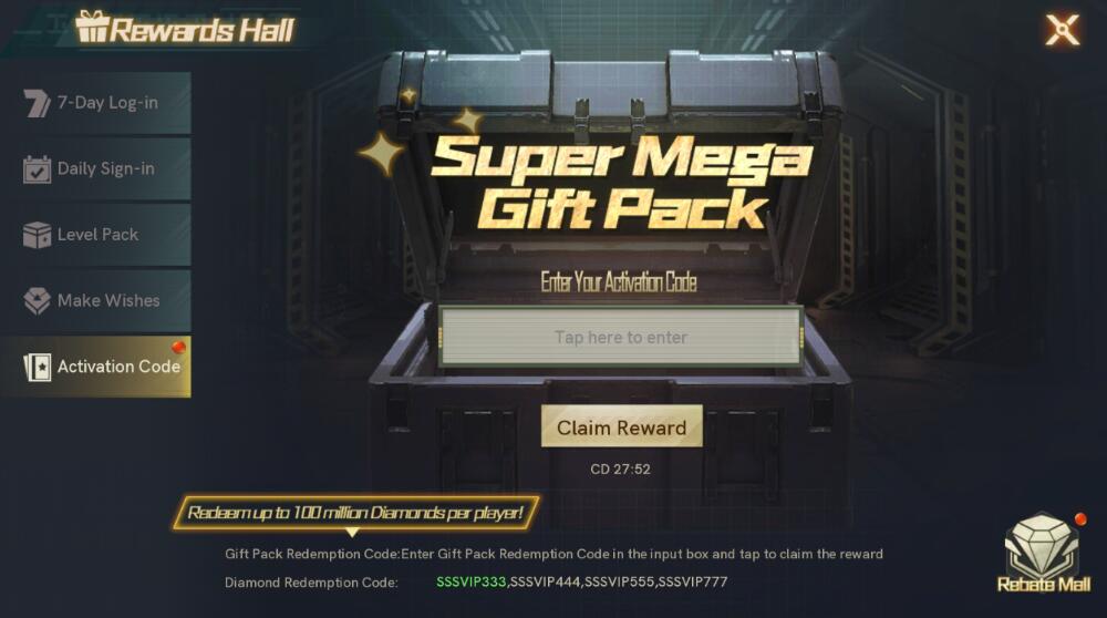 Step 3: Select the section “Activation Code”. Enter the gift code in the table above into the text box. Press “Claim Reward” to get your reward.