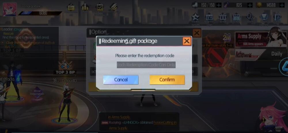 Step 5: Enter the gift code in the table above into the text box. Then press "Confirm" to receive rewards.