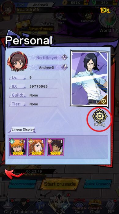 Step 2: At the main screen, click the . icon Player Avatar located in the top left corner.