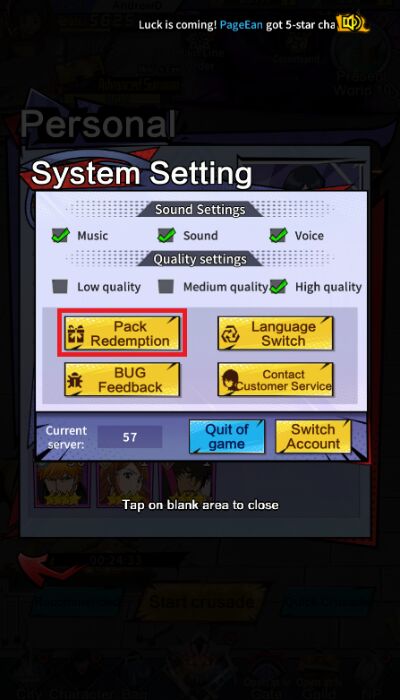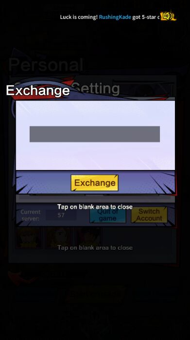 Step 5: Enter the gift code in the table above into the text box. Then press "Exchange" to receive rewards.