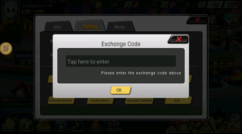 Step 4: Enter the gift code in the table above into the text box. Press "OK" to receive rewards.