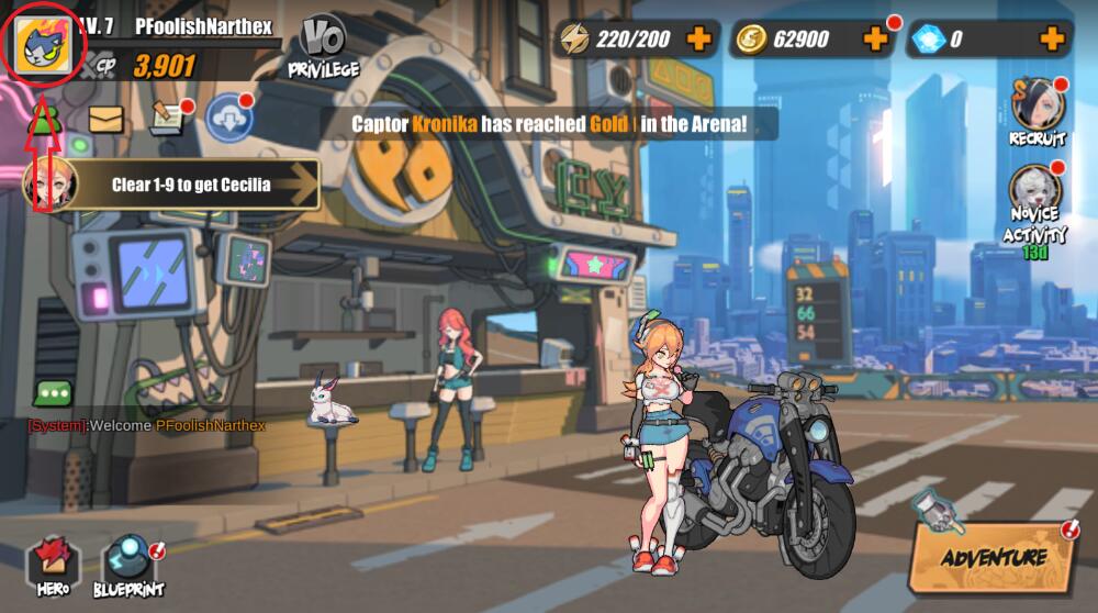 Step 2: At the main screen, click Avatar icon The player is located in the top left corner of the screen.