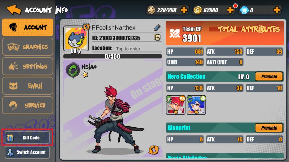 Step 3: Click the . icon “Gift Code” located on the left side.