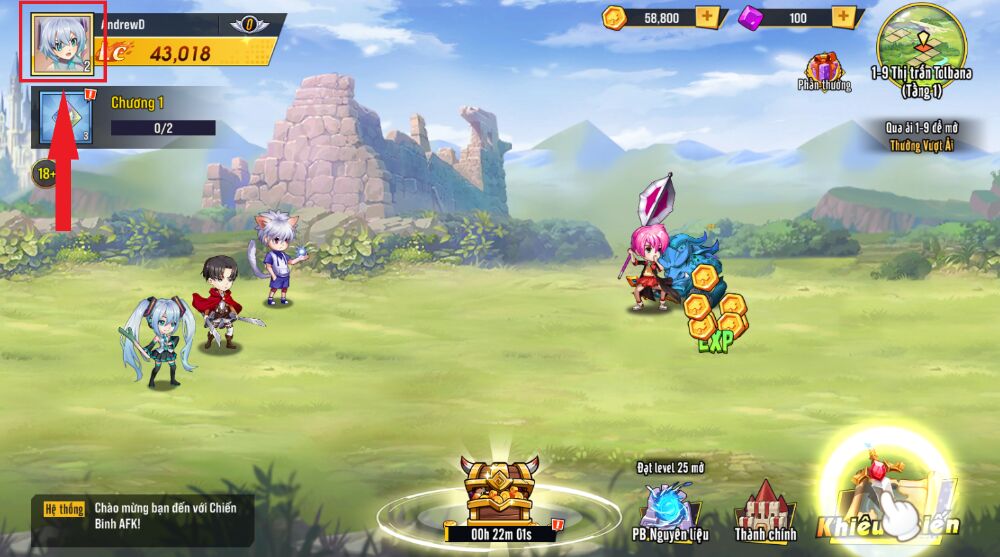Step 2: At the home screen, click Avatar icon The player is located in the top left corner of the screen.