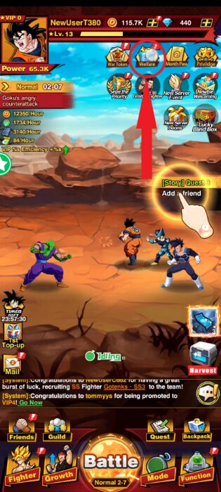 Step 2: At the main screen, click the . icon Welfare located in the upper right corner of the screen.