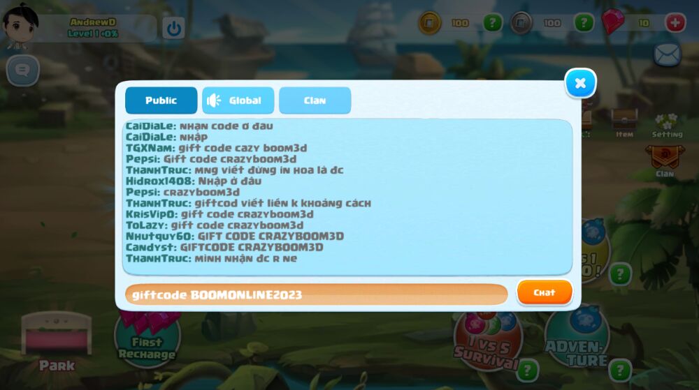 Step 3: Enter the code in the chat box with the syntax: giftcode + code (For example: giftcode BOMBERMASTER). Then press "Cat".
