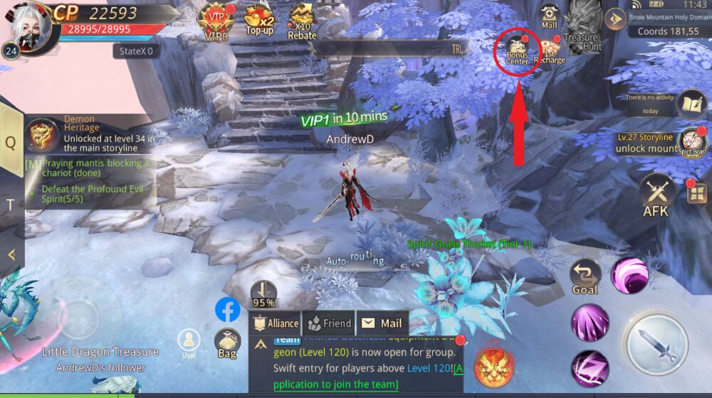 Step 2: At the main screen, click the . icon Bonus Center located in the upper right corner of the screen.