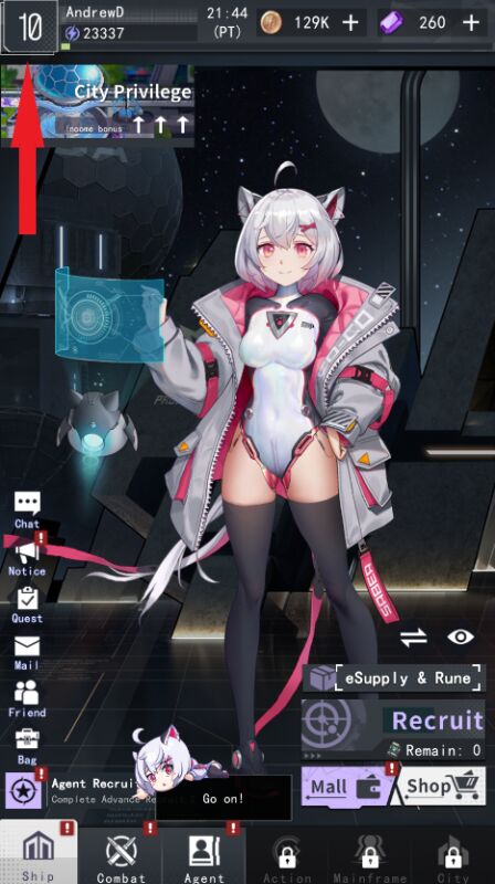 Step 2: At the main screen, click the . icon player level located in the top left corner of the screen.