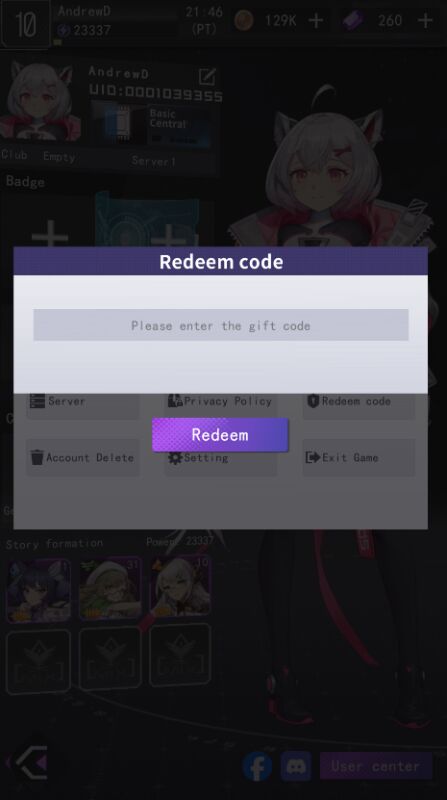Step 5: Enter the gift code in the table above into the text box. Then press “Redeem” to receive rewards.