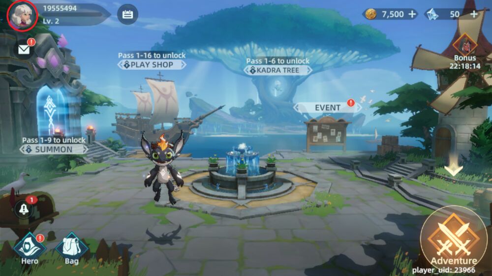 Step 2: At the main screen, click Avatar icon The player is located in the top left corner of the screen.