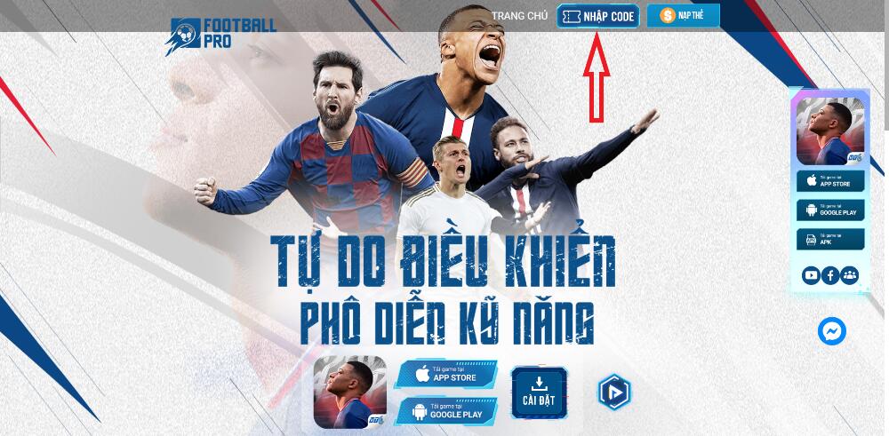Step 1: Go to Homepage of Football Pro VTC. Log in to your account and click on the item “ENTER CODE”.