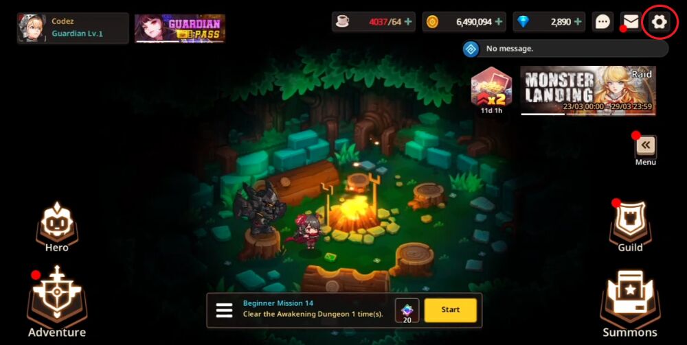 - Open the game Guardian tales