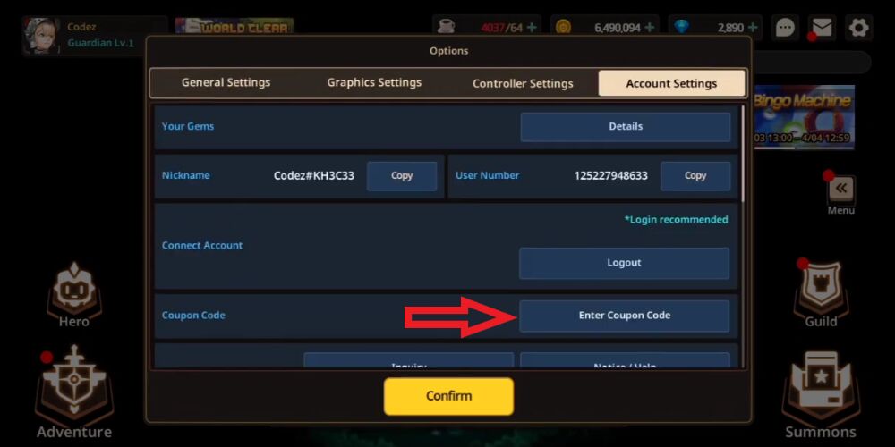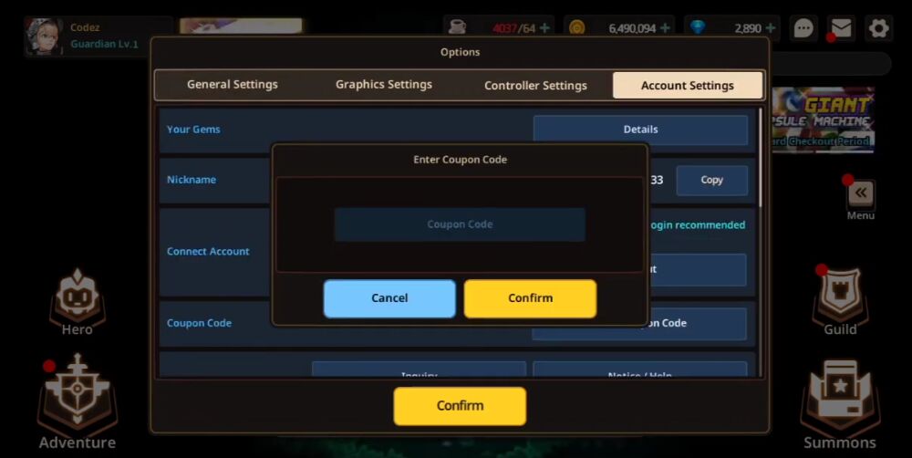 Redeem the Guardian Tales code on an Android device is a simple process. Just follow these steps to redeem them: