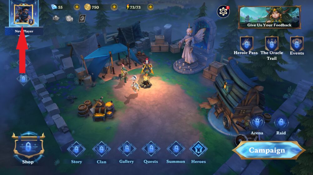 Step 2: At the home screen, click Avatar icon The player is located in the top left corner of the screen.
