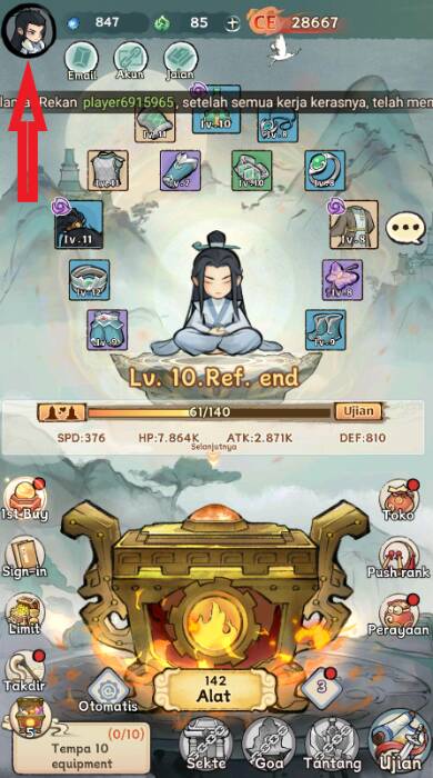 Step 2: At the main screen, click the . icon Player Avatar located in the top left corner.