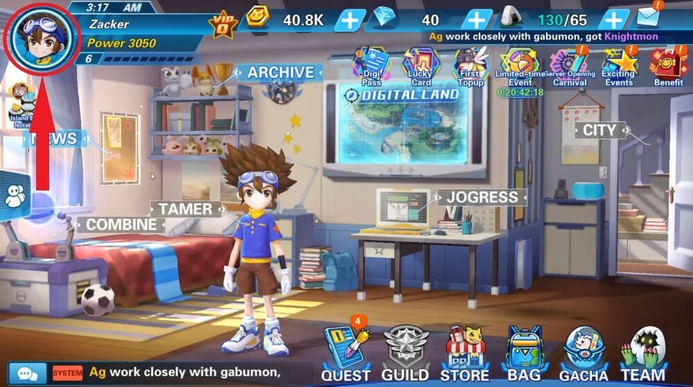 Step 2: At the main screen, click the . icon Player Avatar located in the top left corner of the screen.