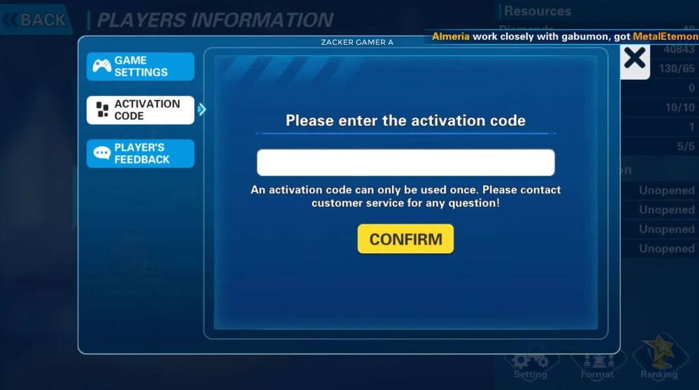 Step 5: Enter the gift code in the table above into the text box. Then press "Confirm" to receive rewards.