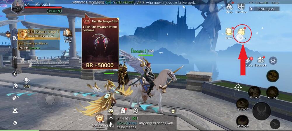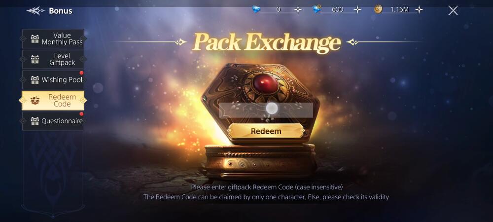 Step 3: Select item “Redeem Code”. Enter the gift code in the table above into the text box. Then press “Redeem” to receive rewards.