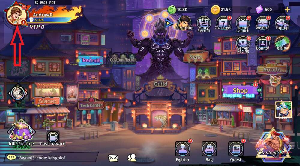 Step 2: At the main screen, select the icon Player Avatar located in the top left corner.