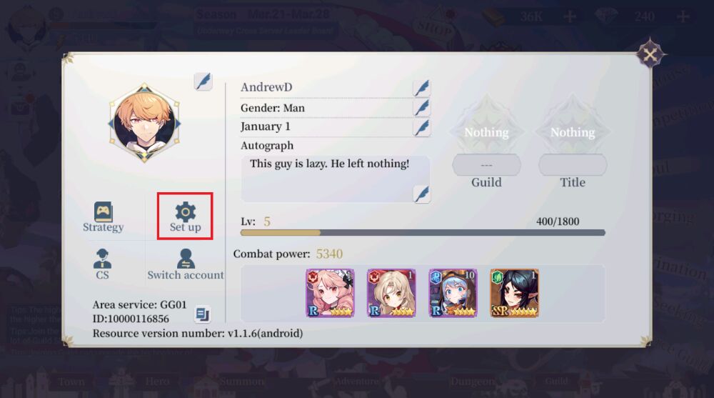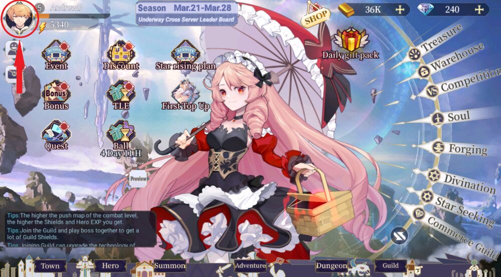 Step 2: At the home screen, click Avatar icon The player is located in the top left corner of the screen.