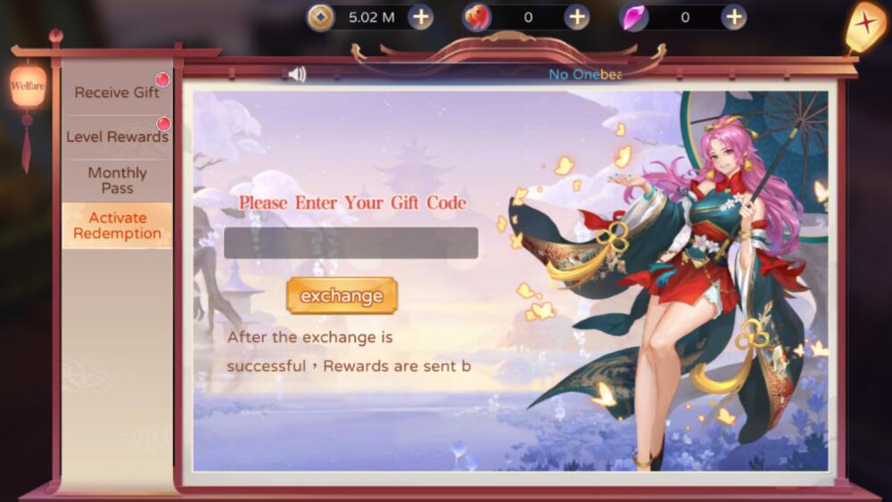 Step 3: Select item “Activate Redemption”. Then enter the gift code in the table above into the text box. Press "Exchange" to get your reward from the mailbox.